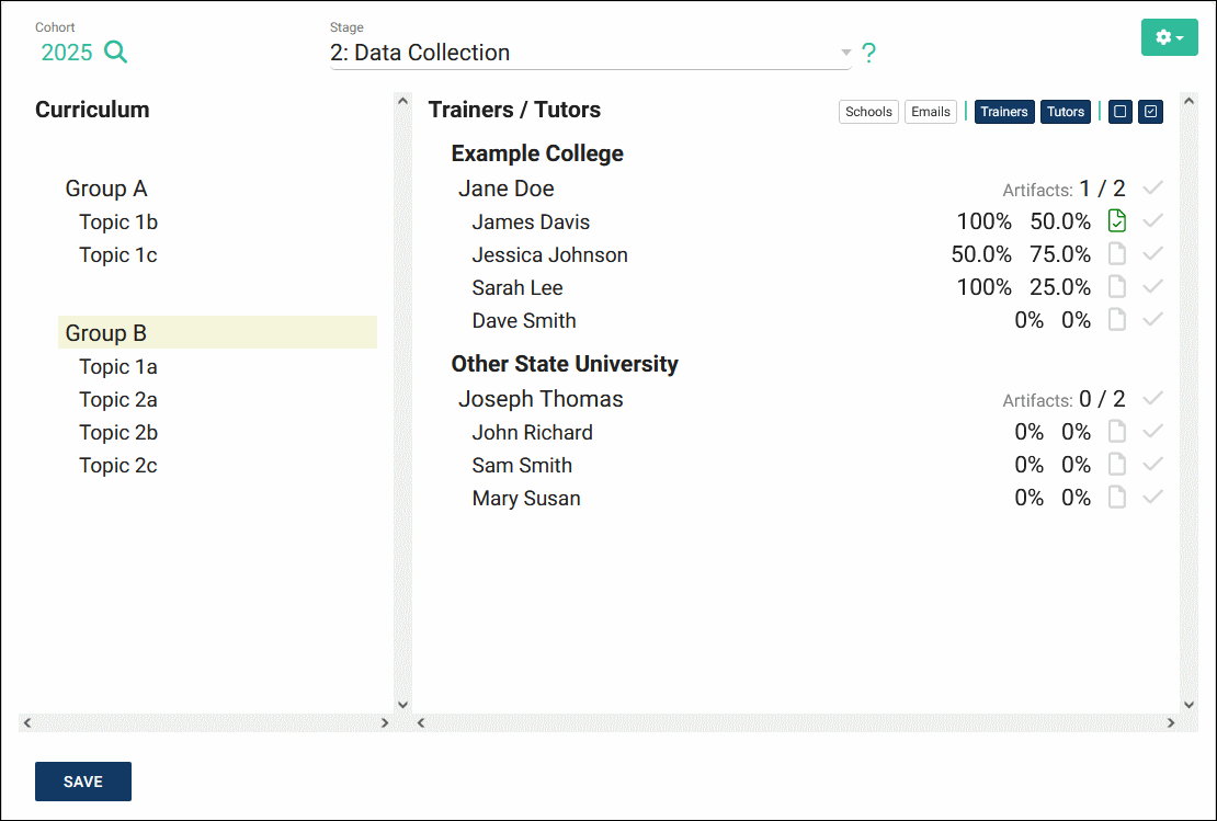 Stage 3 is the data collection stage, allowing your coordinators to review progress, artifacts, and observations while preventing any further data collection. This stage is for generating certificates of completion for the various tutors.