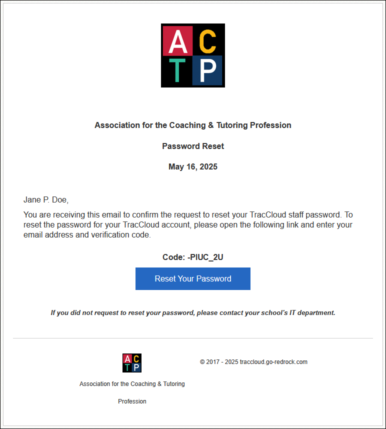 After entering the code, a new password can be set, and the trainer will be able to return to the TracCloud login screen and log into the system.