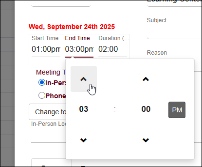 • "Split the current visit, create a new visit" - TracCloud will split the existing visit to fit the new visit in the above scenario. The student will have a 1pm to 2pm visit, a 2pm to 3pm visit linked to their appointment, and a 3pm to 4pm visit.
