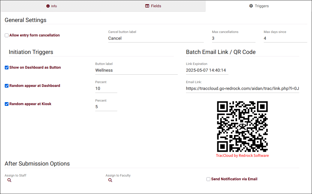 - If recipients are allowed to cancel, choose how many times they can cancel before TracCloud will require that they answer the form.