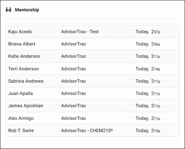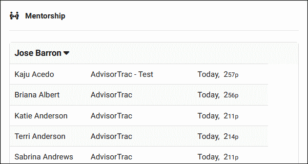 Once a mentee is assigned to a mentor, or a mentor to a supervisor, a new dashboard widget will be made available to these individuals.