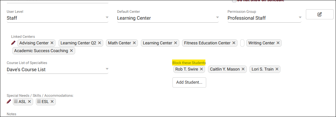 TracCloud allows you to create max appointment rules to prevent excessive appointments, you can block lists of students from booking in particular centers or profiles, or even deactivate accounts entirely based on lists. However, in some cases you may only want to block an individual student from booking with an individual consultant, which is possible with a specific max appointment rule detailed below.